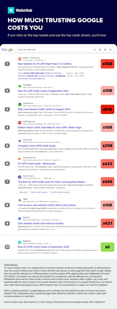 وبسایت WalletHub با جستجوی عبارت “best 0% APR credit cards” در گوگل نشان داد: